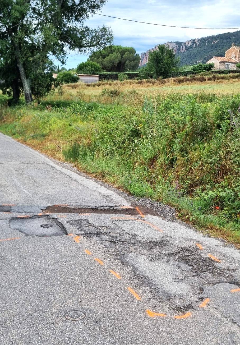 Nids de poule : Trous dans la chaussée résultant de la désintégration du revêtement, souvent aggravés par le passage des véhicules.