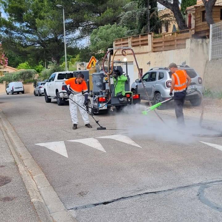 Sa technique d'émulsion d'enrobé projeté, permet de réparer tous les dégâts occasionnés sur la voirie, comme les nids de poule, le faïençage, le défoncement de bord de chaussée, l'arrachement de surface du revêtement en enrobé, le gonflement dû au gel, les affaissements...