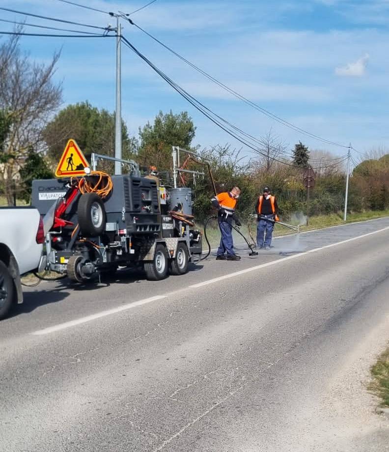 Sur un chantier dans les Bouches-du-Rhône, Via Patch a mobilisé son fondoir pour traiter les premiers signes de dégradation de chaussée.