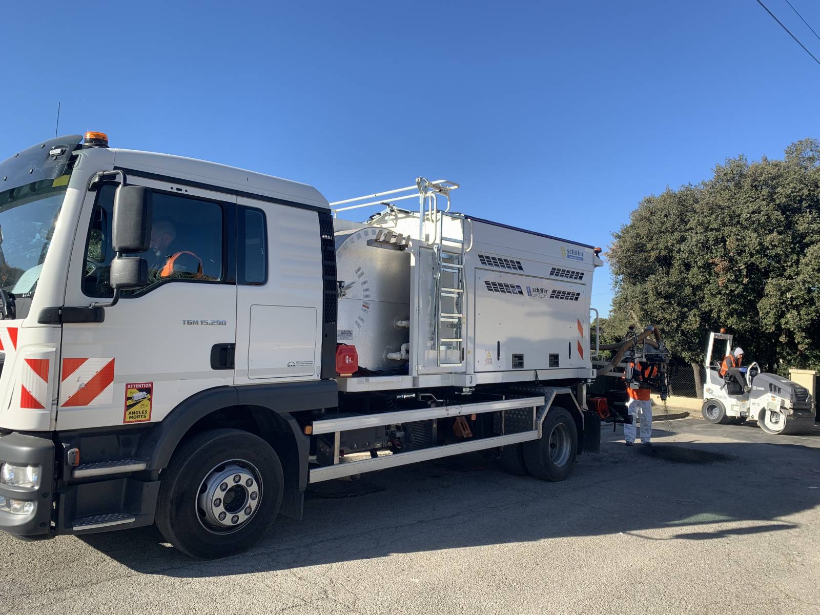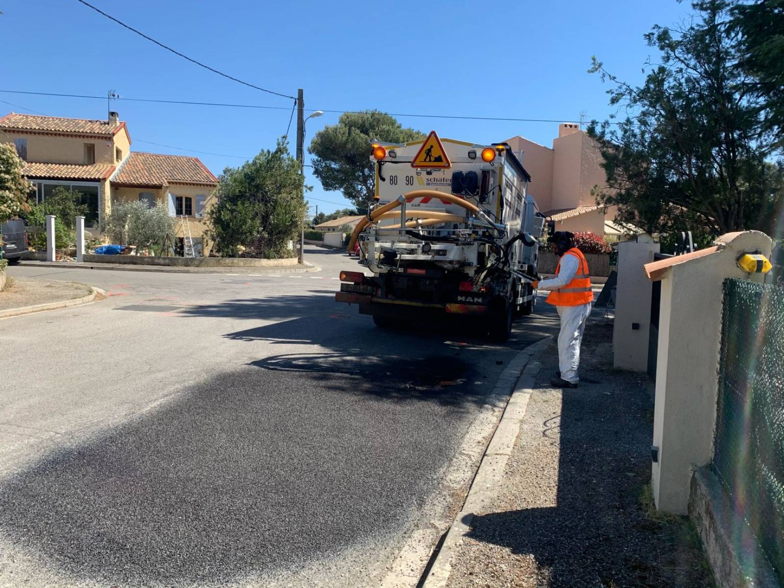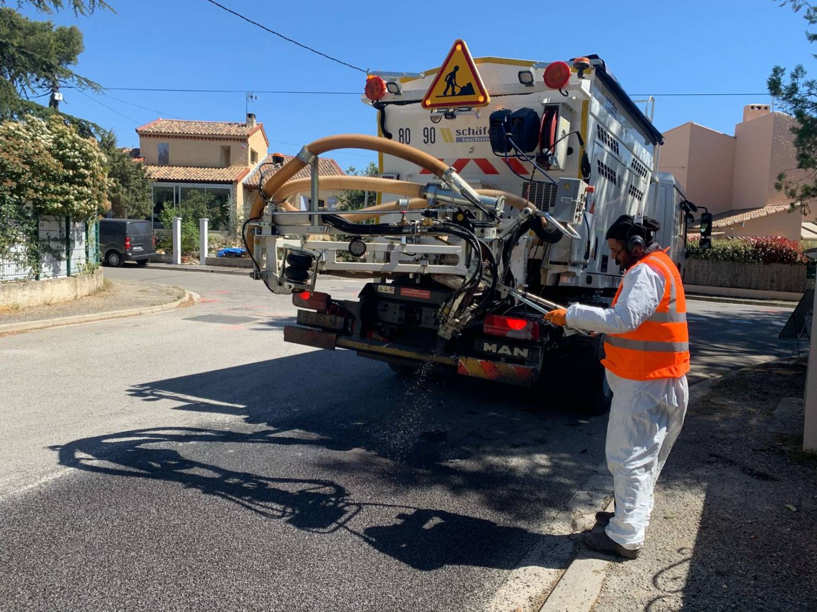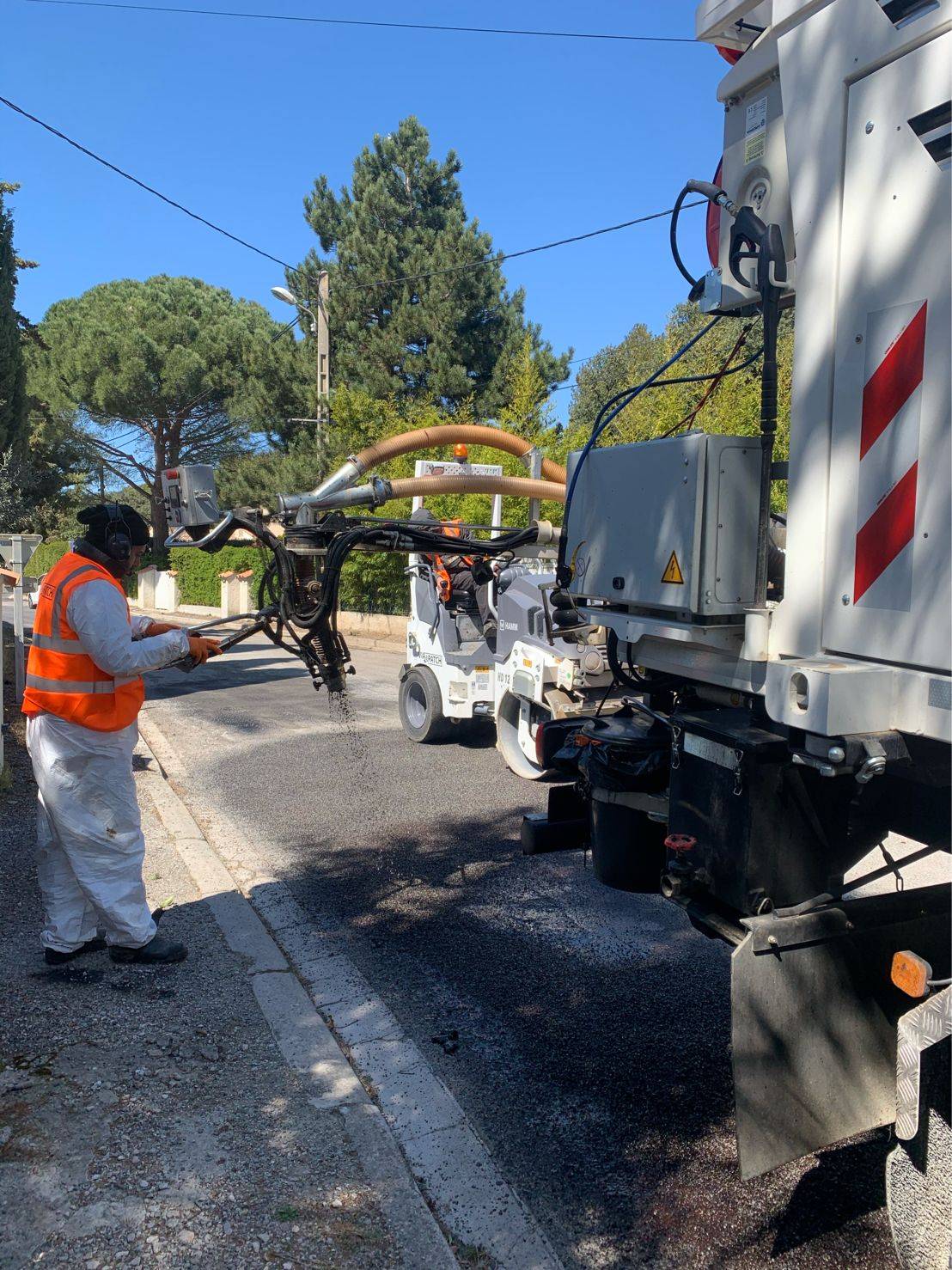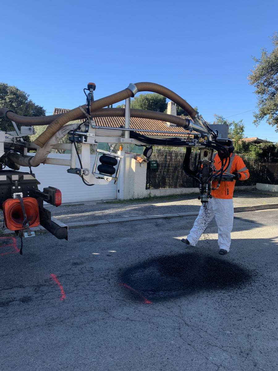 L'atelier BLOW-PATCHER est intervenu sur la commune de LAMBESC, dans les Bouches-du-Rhône, pour la réparation du bord de la chaussée et des nids de poule sur la voirie, dans un lotissement.