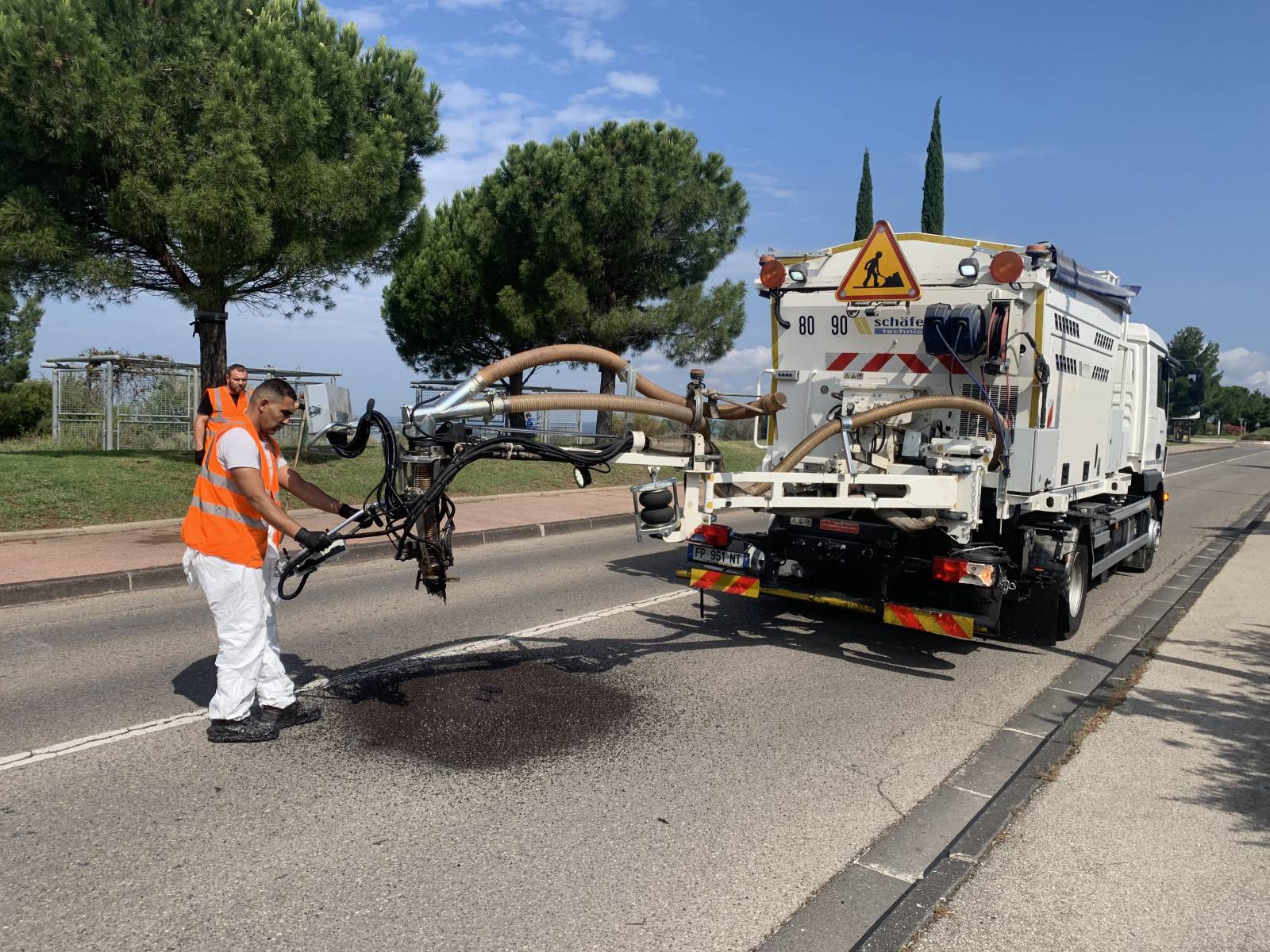 Le BLOW-PATCHER enrobeur-projeteur a permis de rénover et réparer les dégâts de la voirie.