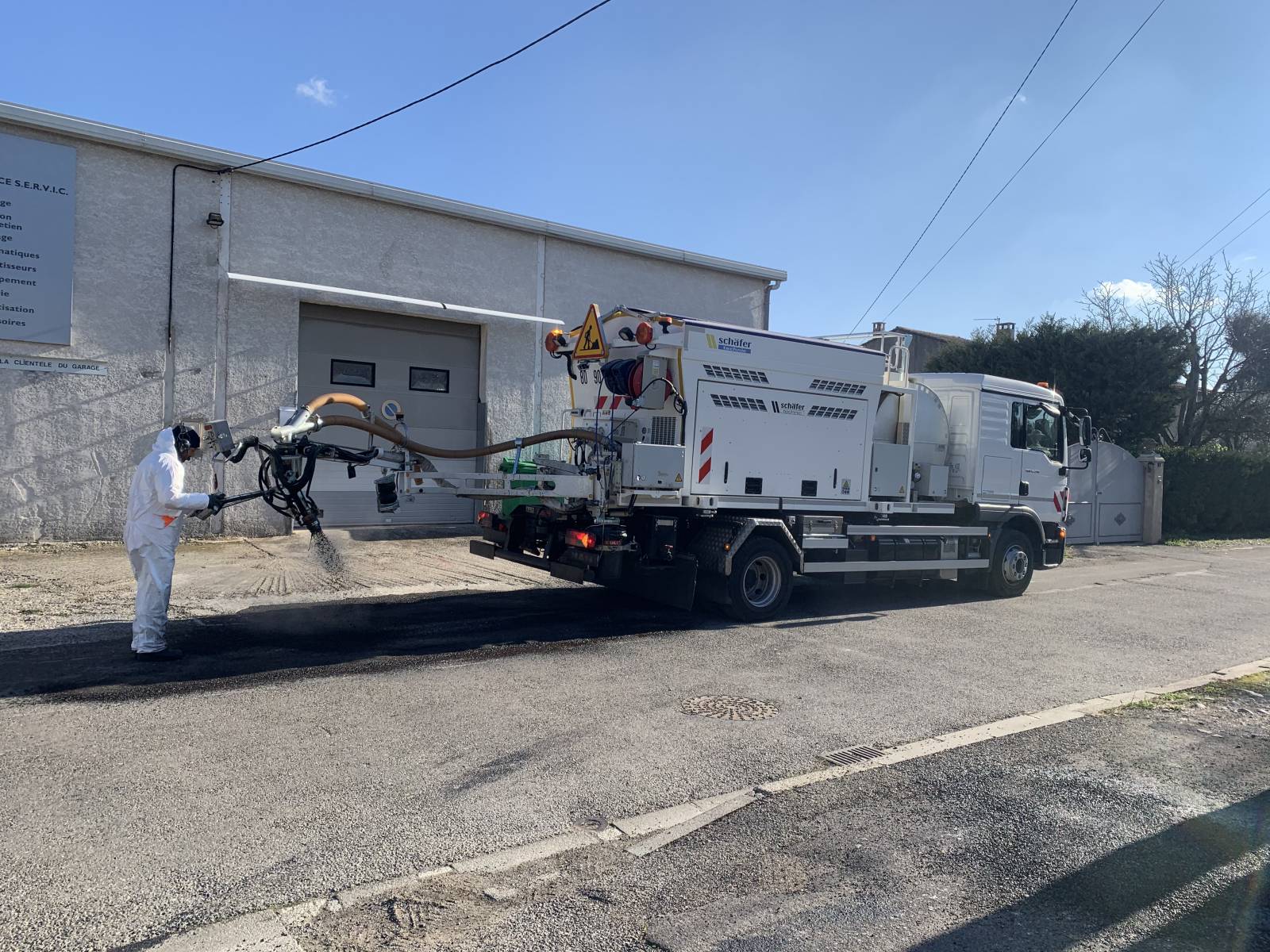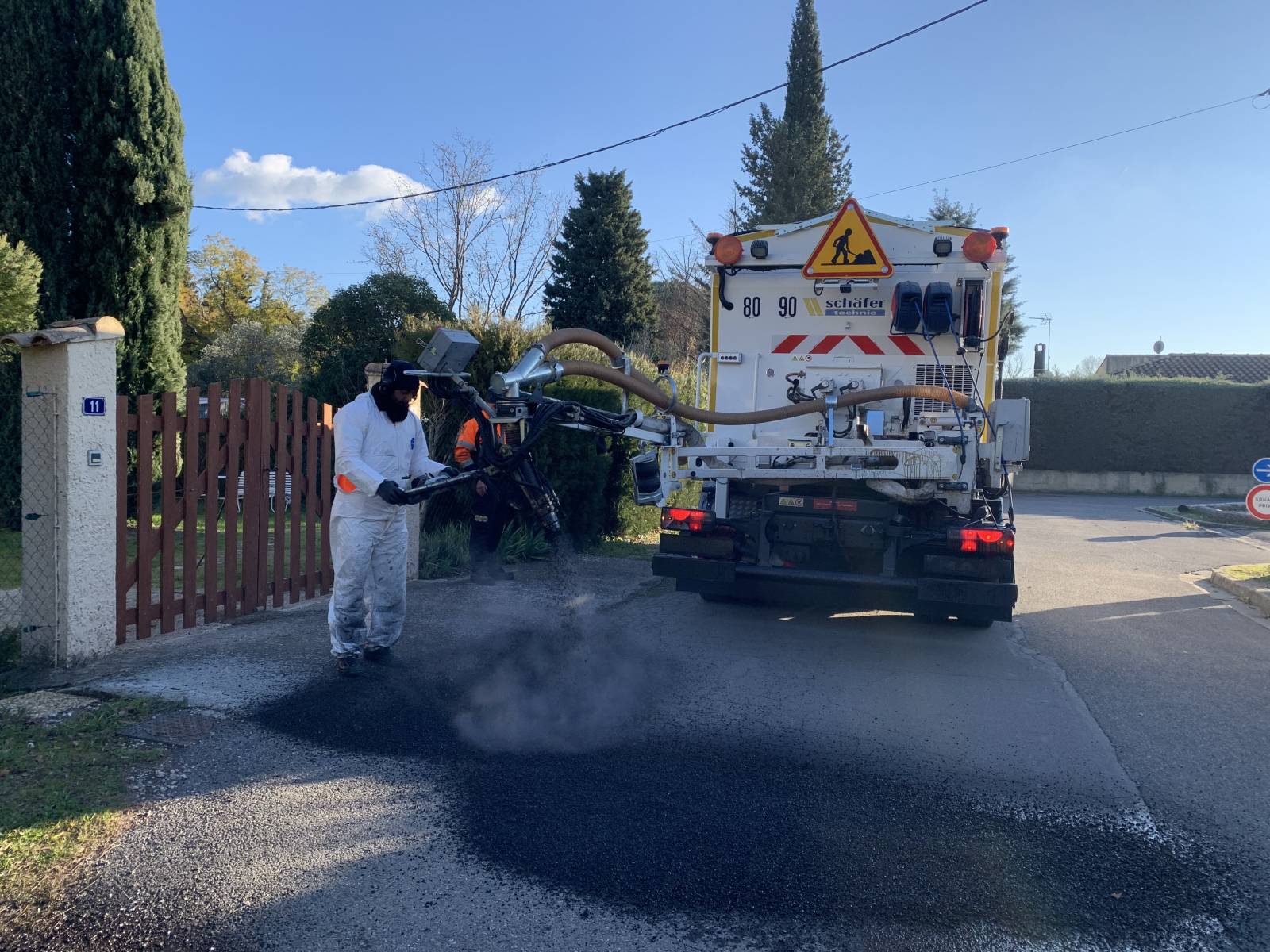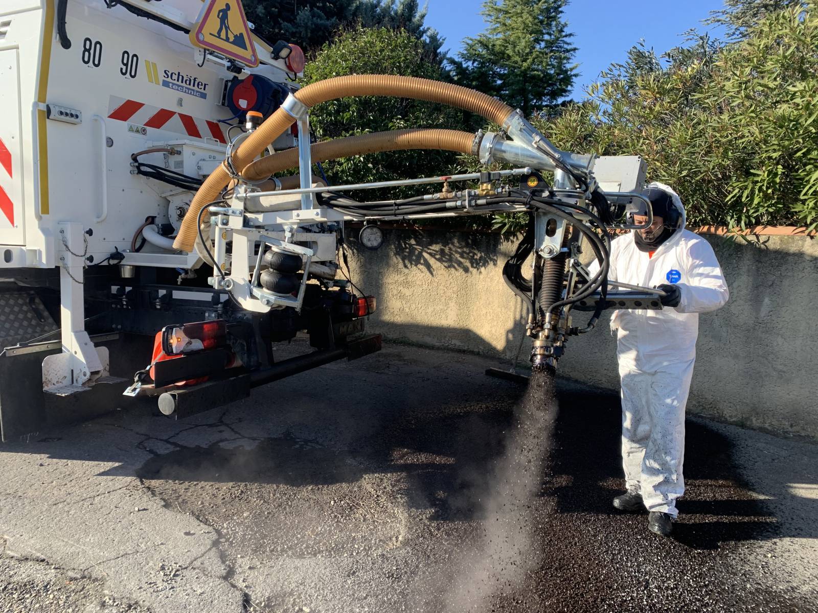 Grâce à la technique de l'enrobé projeté, la voirie est réparée, rénovée, et cela permet de rallonger sa durée de vie à moindre coût.