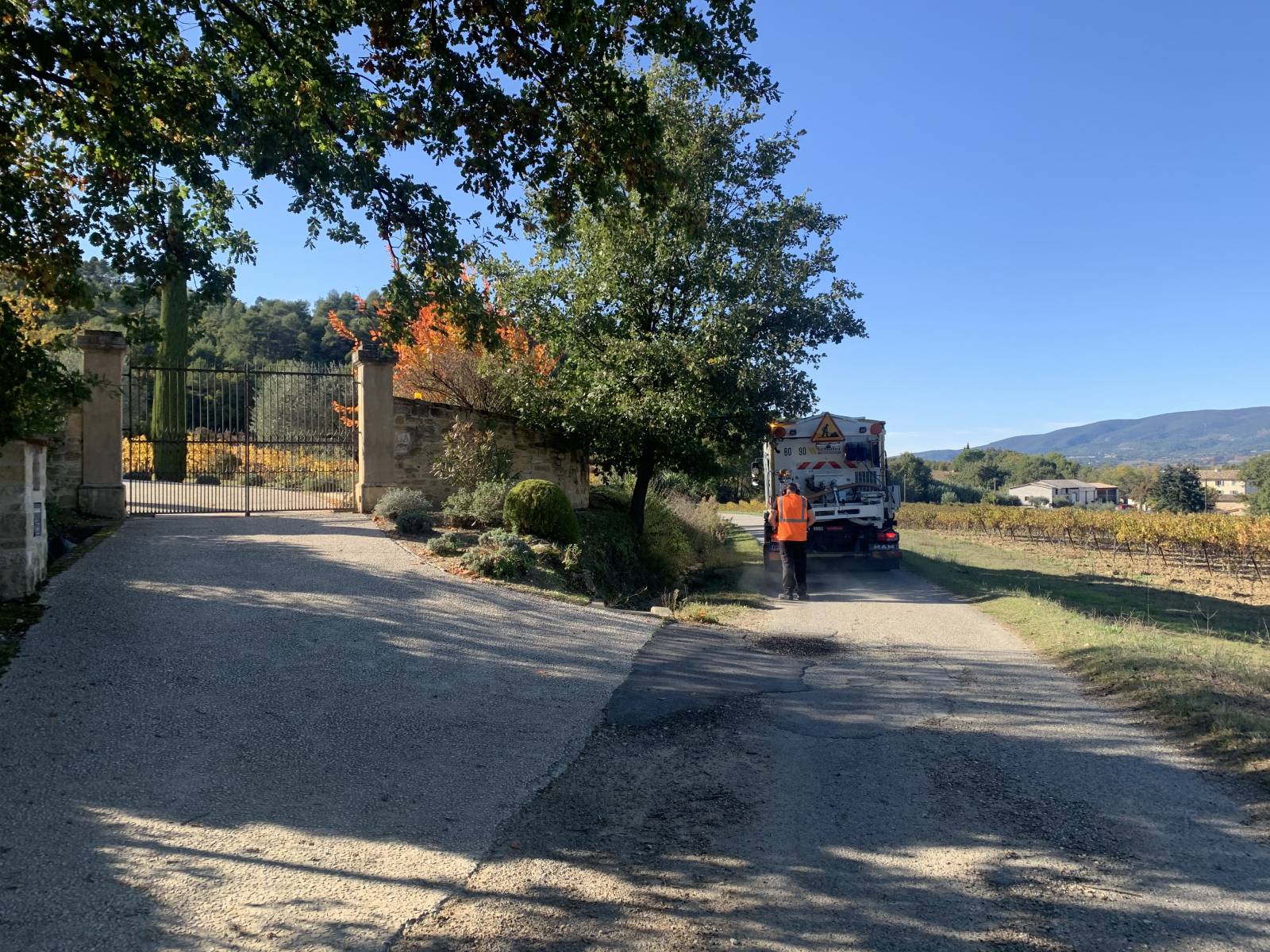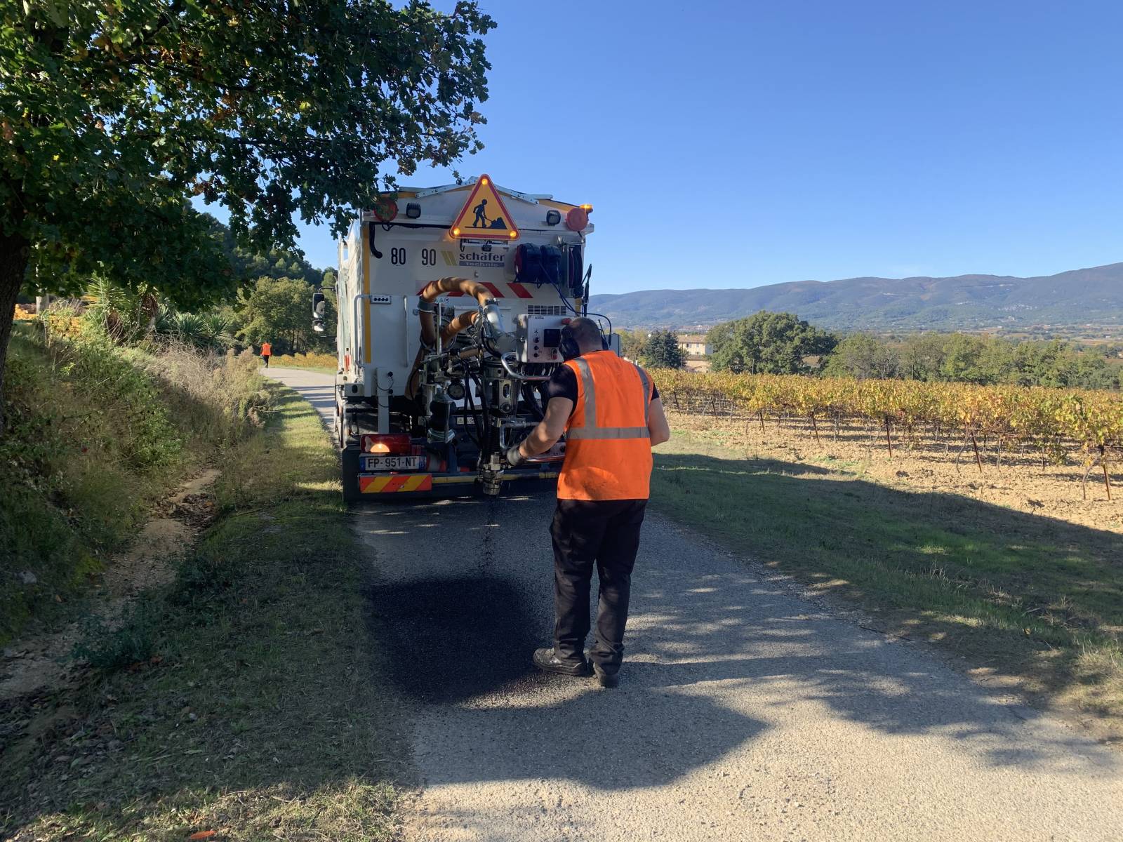 Le BLOW-PATCHER et son atelier, en location avec chauffeur et techniciens spécialisés, est intervenu dans le Vaucluse, pour la réparation et la rénovation de leurs routes.